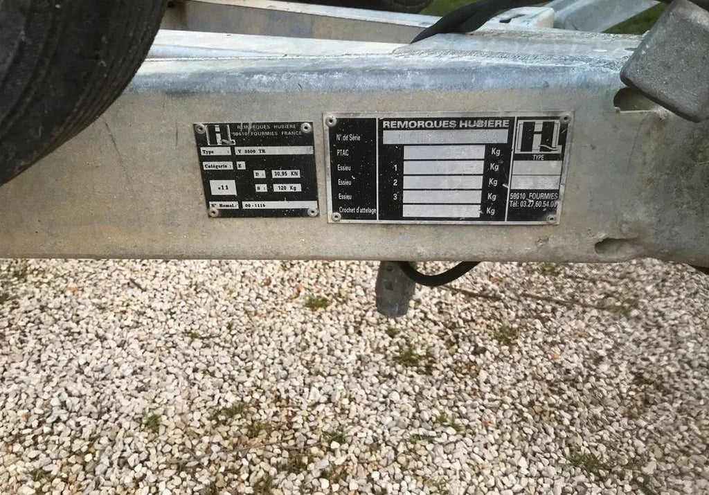 Remorque porte-engins HUBIERE de 2009 destinée au transport d’engins de chantier et de matériels. Adaptée à un usage professionnel ou régulier.